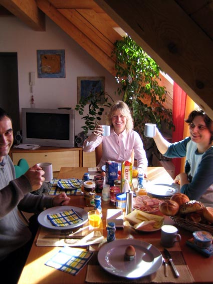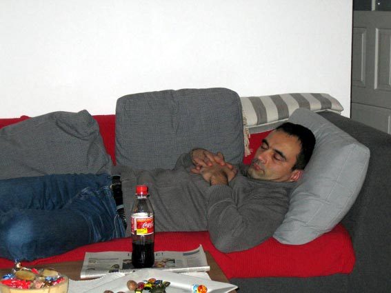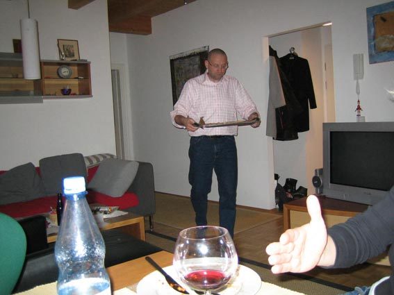 Datum: 18. bis 20. Februra 2005 Teilnehmer: Sektion Minge, Küchenfee vom Bodensee, Sektion Ruhrpott, Sektion Blaue Adria (Gastgeber) Start: 19:30 Uhr Ende: 1:30 Uhr Bleche: 5 Nachtisch: Appelkakken Frozzen Besonderheiten: die frisch geplättelte Sauna kam wieder nicht zum Einsatz - andere Leute gehen in den Dom oder ins Museum (doof), wir gehen drei (!) Stunden zu IKEA - zum Frühstück gibt's Bier - ein Wechsel der Schlafanzugsgarnituren kann sich positiv auf die Vermehrung auswirken - Uli wird Geschäftsfrau: Stupperware, klappt's mit dem Wok??? - der Schlafvirus greift um sich - Frank springt aufs Treppchen: Letzter Bettgänger - Katharina heisst jetzt Louis, Otto bleibt Otto.