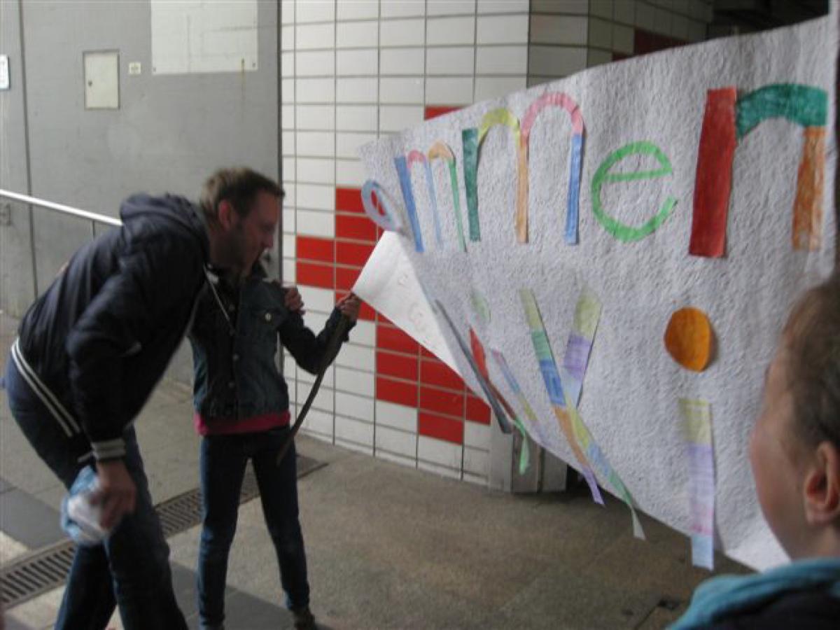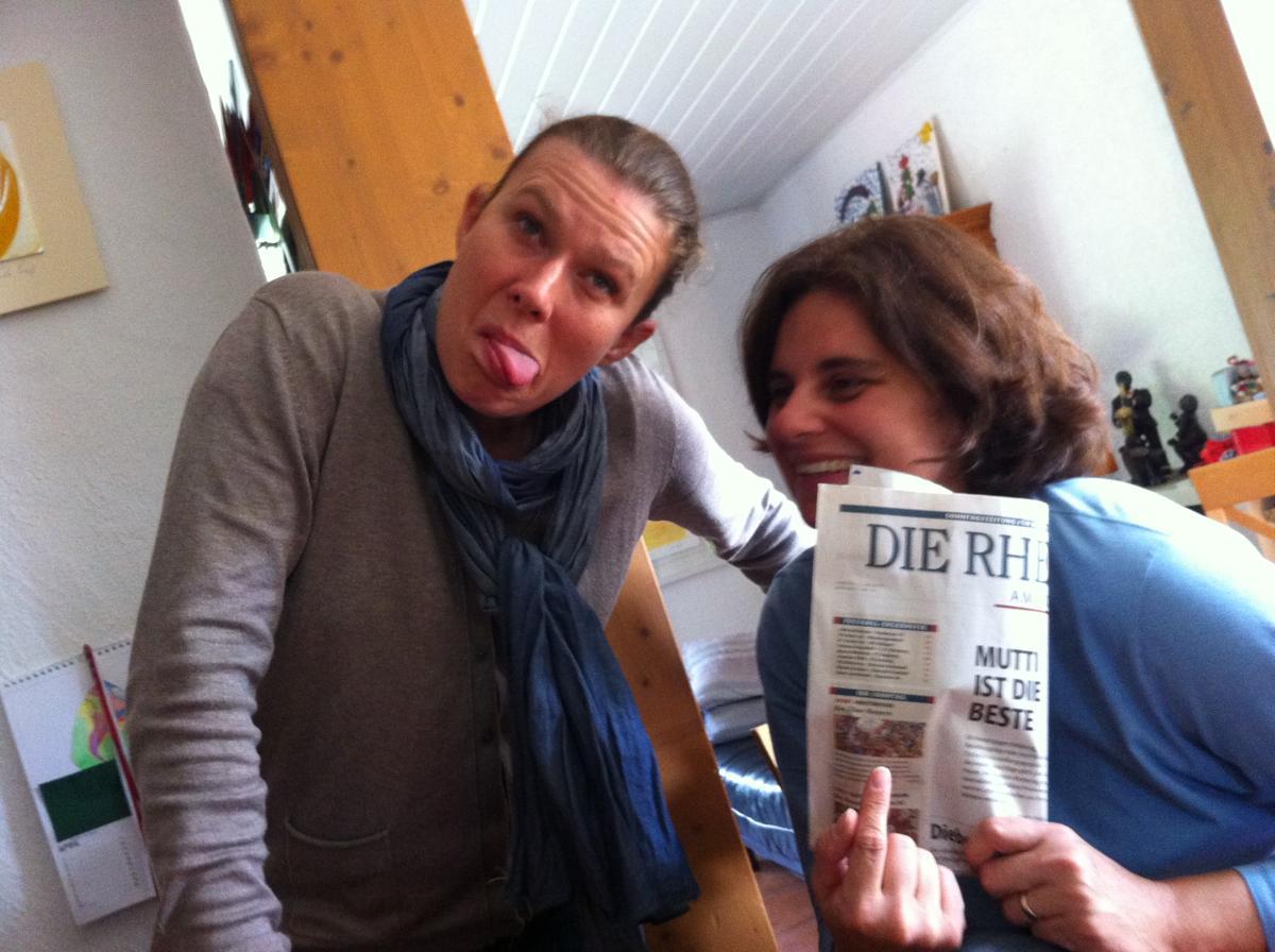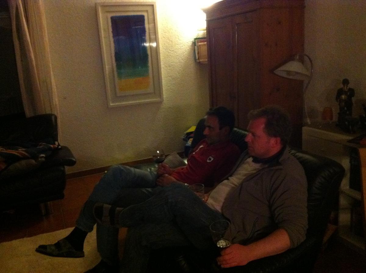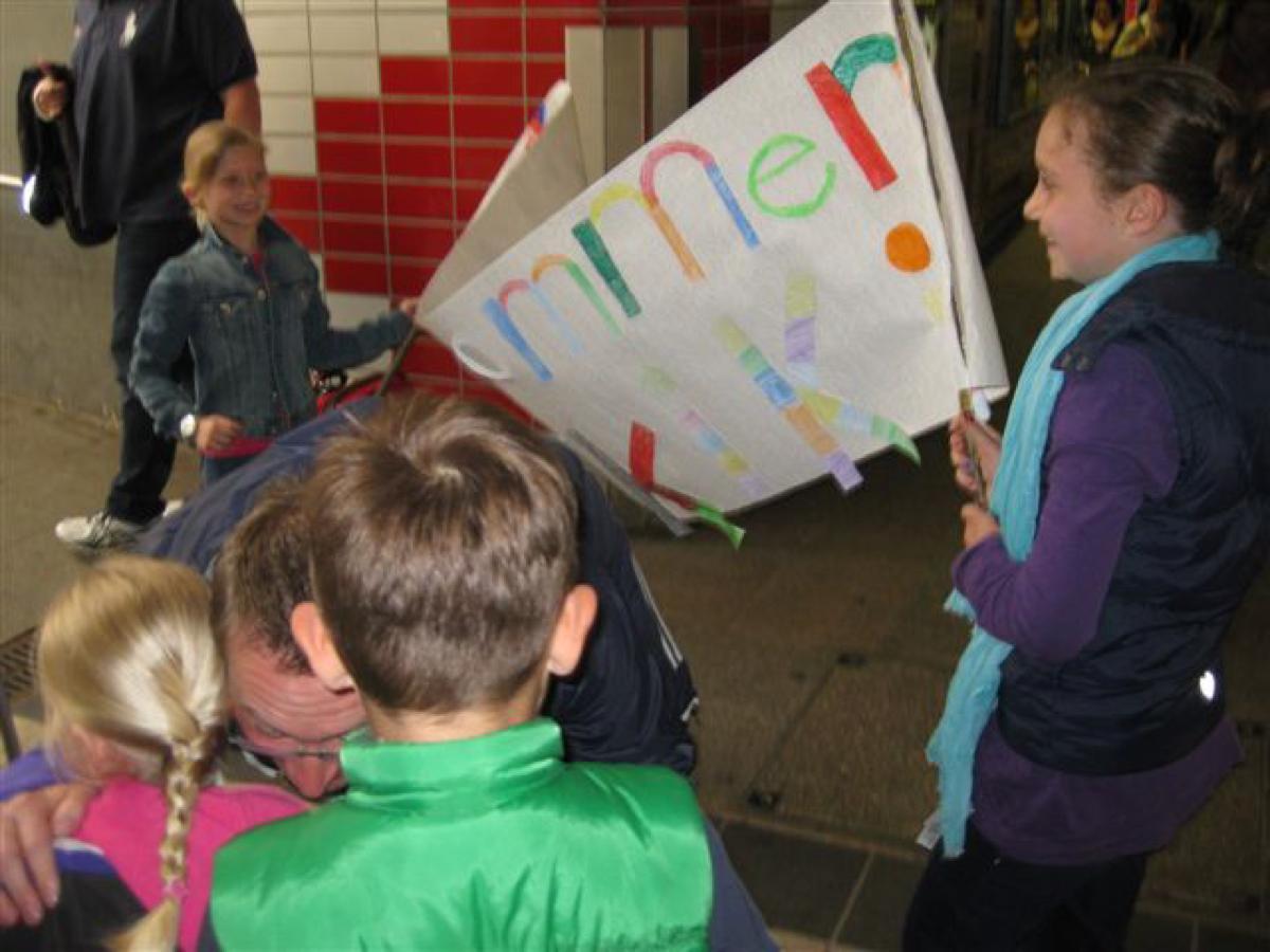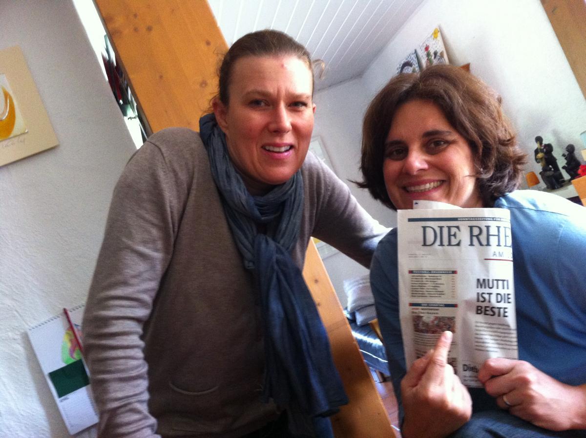 Was für ein Auftakt! Während die Männer sich auf dem Altripper Tennisplatz vergnügen, organisieren die Frauen das wohl süßeste Empfangskomitee der Welt! Was für eine tolle Begrüßung am Mannheimer HBF – vielen Dank!!! Daran konnte auch der anschließende Shopping-Mall-Marathon nix ändern (eigentlich war es ja nur ein Laden, der aber intensiv …H&M). Immerhin, Maxi und ich konnten die erste Halbzeit in unserem Stamm-Cafè mit dem Promi-Touch mitverfolgen.