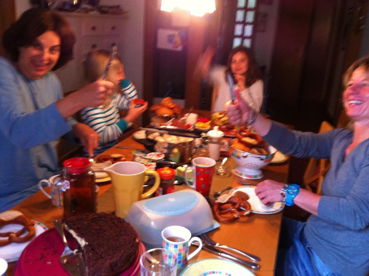 Nach einem seeehr spätem ersten Blech (nach 8!) ging es munter weiter. Die letzten Nachtschwärmer beendeten den Abend um 03:36 Uhr (mit Küche und Zähne putzen!!!). Und am Sonntag war dann Muttertag – welch ein Glanz, welch eine Dankbarkeit in den Augen der Kinder und Väter, welch ein Glanz der Freude in den Augen der Mütter … Tina hat es gar nicht mehr ausgehalten und hat sich ratzfatz vom Acker gemacht … Dank der Sektion Minge, die mich bis vor die Haustür gebracht bin ich auch gut nach Hause gekommen.