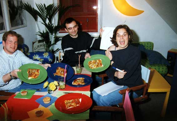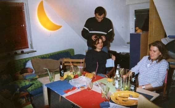 Datum: 19. April 2002 Teilnehmer: Sektion HN-Stadt (Gastgeber), Sektion HN-Sontheim, Sektion Minge , Sektion Kurpfalz Start: 18:15 Uhr (Tina war am pünktlichsten Ende: 03:30 Uhr Bleche: 5 Nachtisch: Terra Cotta (mit Erdbeeren?) Besonderheiten: Ralphs Couch-Dauertest, Gastgeber hat immer noch kein Wellholz, Erwachsene (zumindest sollte man das annehmen) beschäftigen sich intensiv mit 'nem Wackeldackel.