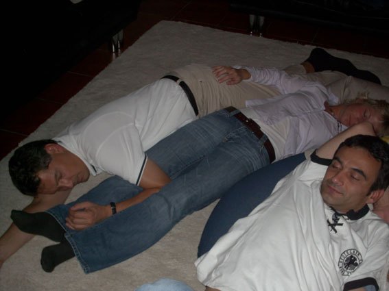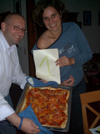 Datum: 12. bis 14. Oktober 2007 Teilnehmer: Küchenfee vom Bodensee mit Gast, Sektion Ruhrpott, Sektion Blaue Adria (Gastgeber) Start: 20:00 Uhr (wegen Tennis!) Ende: 22:30 Uhr Bleche: 2 Nachtisch: Zwiebelkuchen (???) Besonderheiten: es ist KEIN Gerücht, dass Zwiebelkuchen und neuer Wein die Verdauung auf Trapp bringen ... die letzten Sonnenstrahlen im Herbst laden zu einem kleinen Tennis-Match ein, gottseidank gibt's Bier im Tennisheim... unser Gast schlägt die ungekrönte Queen im frühen Schlafen um Längen ... vielleicht lag's am Fernsehprogramm ...
