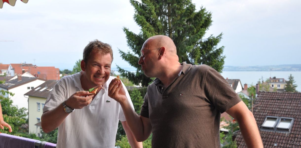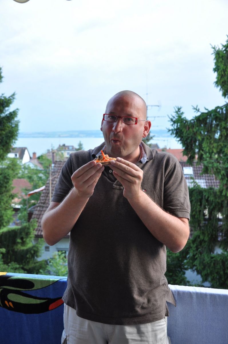 Datum: 9. bis 11. Juli 2010 Teilnehmer: Ex-Küchenfee vom Bodensee, Sektion Ruhrpott, Sektion Blaue Adria (Gastgeber) Start: 18:00 Uhr Ende: 22:00 Uhr Bleche: 3 Pizzas, Maultaschen in der „Brieh“ oder gebraten Nachtisch: Schneegestöber a la Uli Besonderheiten: Ralph bricht den Rekord und schläft bereits um 18:00 Uhr ein – WM 2010 in Südafrika, Spiel um Platz 3 – gut, eines der heissesten Wochenenden des Jahres am/im Bodensee zu verbringen – auch wenn er mit 24° schon recht warm war – Sonntags kommen Freunde von Uta und Ralph – die man im Freibad empfängt , wie es sich gehört - „da macht doch jeder was er will ...“