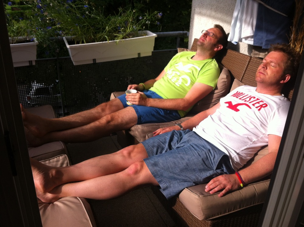 … und deswegen haben wir uns gleich im Biergarten getroffen. Dank Balkonschläfer und offener Fenster war es angenehmer als erwartet. Sonntag‘s noch schnell auf ein paar Maultaschen zum Hesser … schee war‘s, nur Tina hat leider gefehlt …