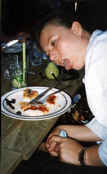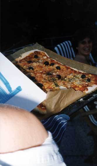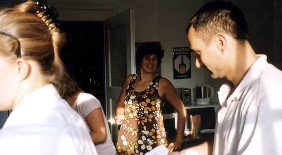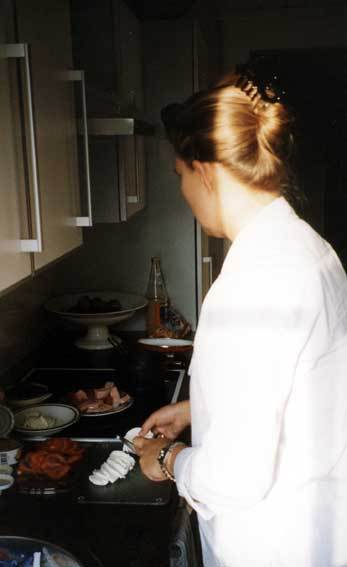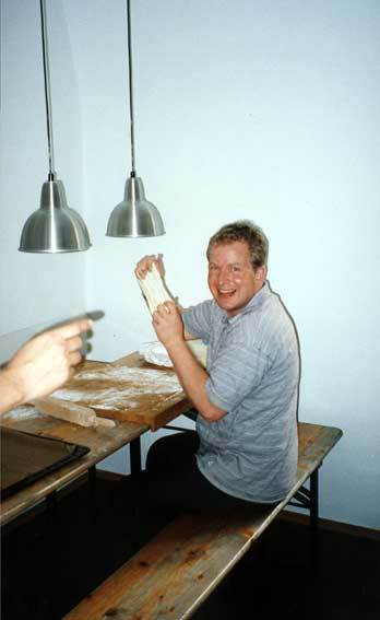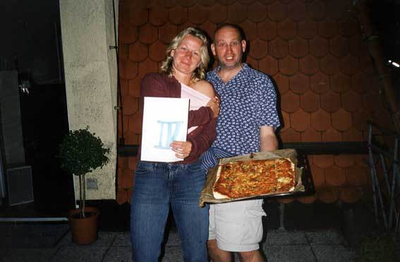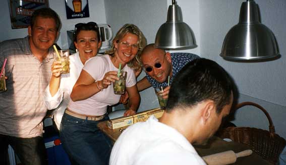 Besonderheiten:  Die Shopping-Einlage fiel nicht so schlimm aus wie befürchtet (Feigen, Lose und ein Brotkasten namens "Brotjunge", designmässig auf den Mülleimer abgestimmt). Der Gastgeber fühlt sich in unserer Gesellschaft so wohl, dass er uns bereits nach dem dritten Blech bedenkenlos was vorschläft und Tina wohl endgültig vom Olymp der Ersteinschläfer verdrängt hat, genial-spontan-diplomatischer Einstieg Ulrikes: "damit ihr's gleich wisst: ich bin schwanger!" erklärt auf dramtisch-witzige Art ihre -unfreiwillige- Abstinenz, Münchner Klima (oder runde Schüssel) lässt Löffel-Biskuits aufschwimmen (muss wissenschaftlich noch untersucht und verifiziert werden).