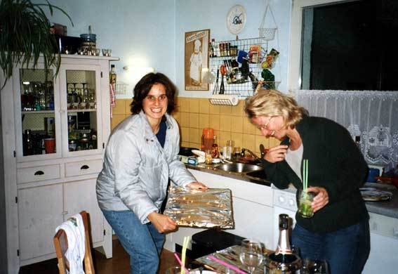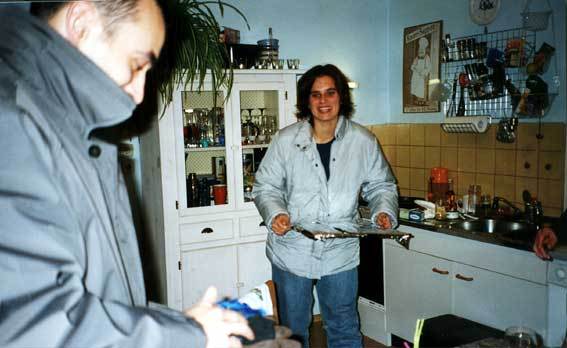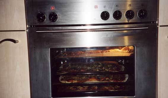 Was letztendlich zum Totalausfall des Koch- und Backzentrums der Sektion Kurpfalz geführt hat, wird wohl auf ewig ein Rätsel bleiben (der Nachbar war ja wirklich knapp davor, es zu lösen…). Tatsache bleibt, dass Blech Zwei ums Verrecken nicht fertig werden wollte, bis die Gastgeber endlich mal auf den Trichter kamen, dass es vielleicht nicht an dem Blech liegt, sondern an dem Ofen. Der sofort hinzugerufene Vermieter und Elektriker (sowas wie der Miche von Mannem) konnte nach halbstündigem Forschen leider nur noch den Tod des Gerätes feststellen. Es war 20.30 Uhr und die Mägen hingen in den Kniekehlen, aber dank der hilfsbereiten Nachbarn Yvonne und Bernhard und Utas Fahrdienst konnte die Situation trotz der Eiseskälte unter Kontrolle gebracht werden.