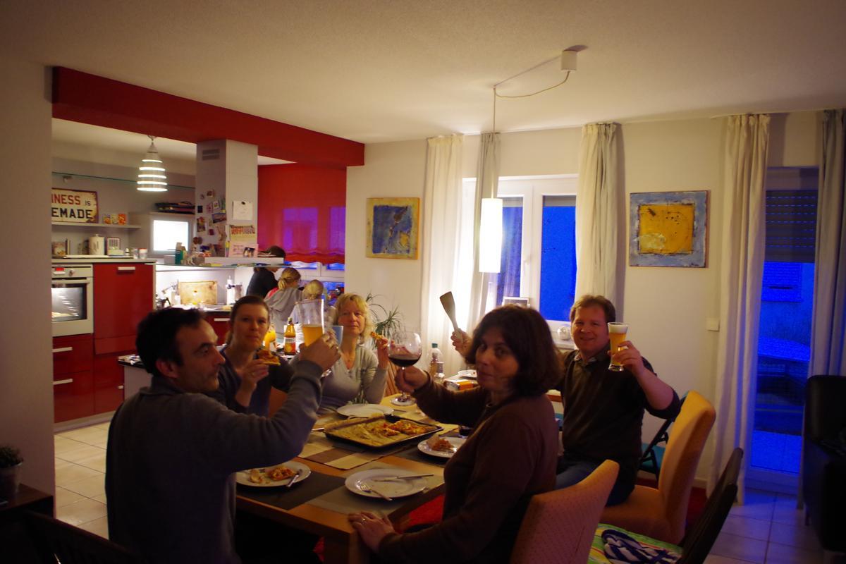 Datum: 14. bis 16. März 2014 Ort: Überlingen Bleche: 6 Nachtisch: nicht so wichtig Besonderheiten: Luma aufpumpen ohne den Stöpsel rauszunehmen ist ganz schön knifflig („... ein Wunder, dass ihr Kinder habt ...“) - Besenbrot mit Leberwurst und Blutwurst aus der Dose macht das Frühstück zum exquisiten Gaumenschmauss - „... ich schlafe erst wenn du schläfst ...“ - Maxi darf nicht Fussball kucken, weil er nicht raucht - Dinkel ist derdiedas bessere Weizen !?! -