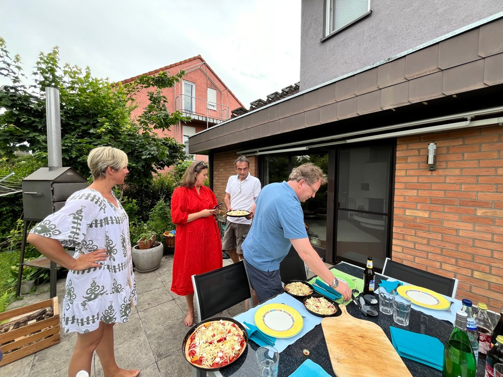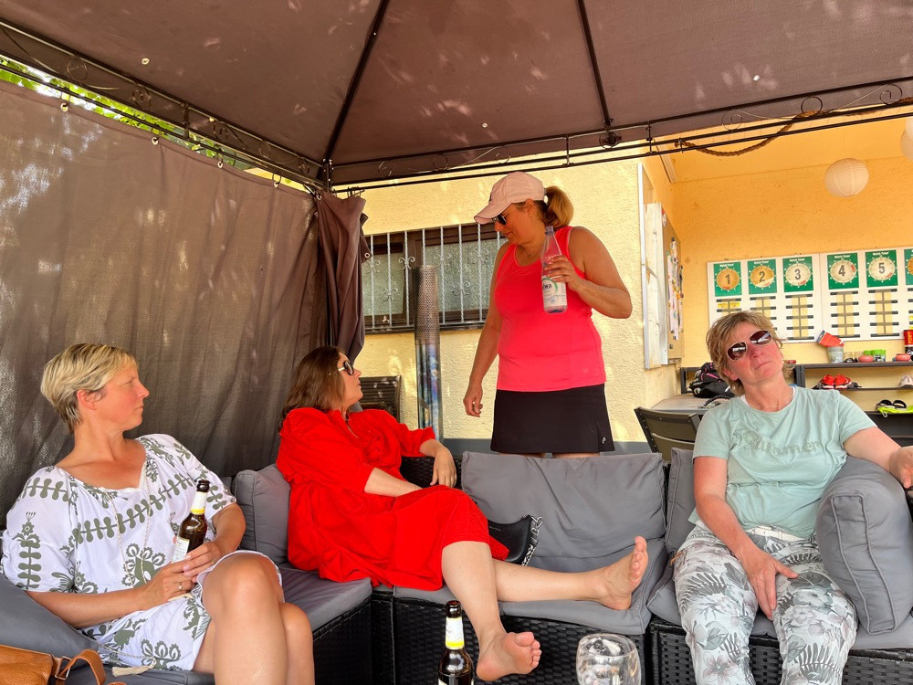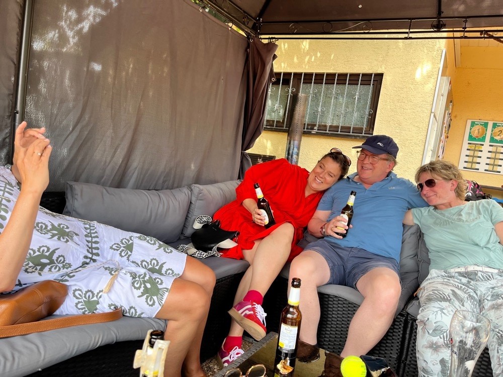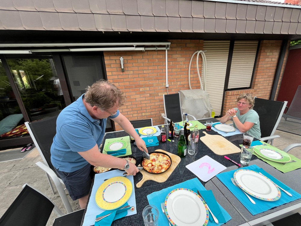 Besonderheiten: Hochwasser im Rhein - Krokodile auf dem Tennisplatz - nur 1 Stunde Verspätung (gilt das überhaupt noch als Verspätung) mit der Bahn aus dem Hohen Norden - ein sonniger Samstag lädt zu sportlichen Höchstleistungen ein (und zu Schorle) - Pizza aus dem Holzofen (viele viele Bleche ...) - Gin-Pröble am Abend hat noch niemandem geschadet - läcker Stullen für die Rückfahrt von der Gastgeberin -