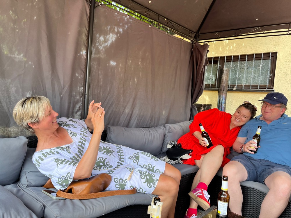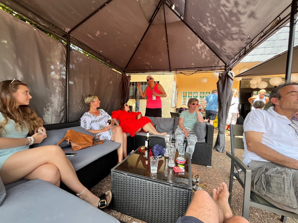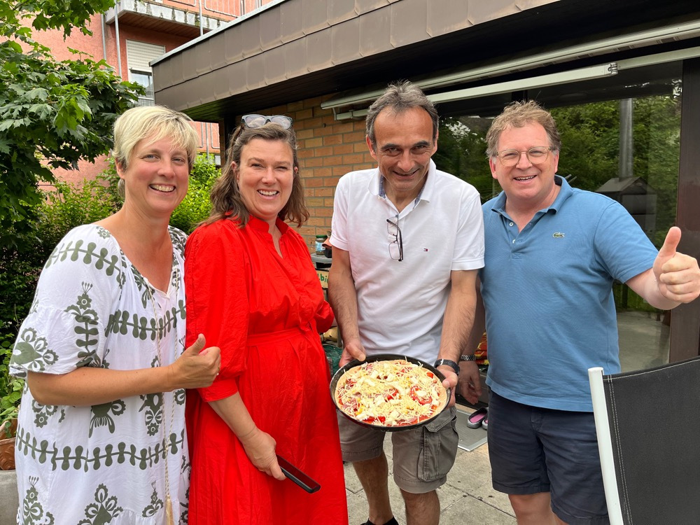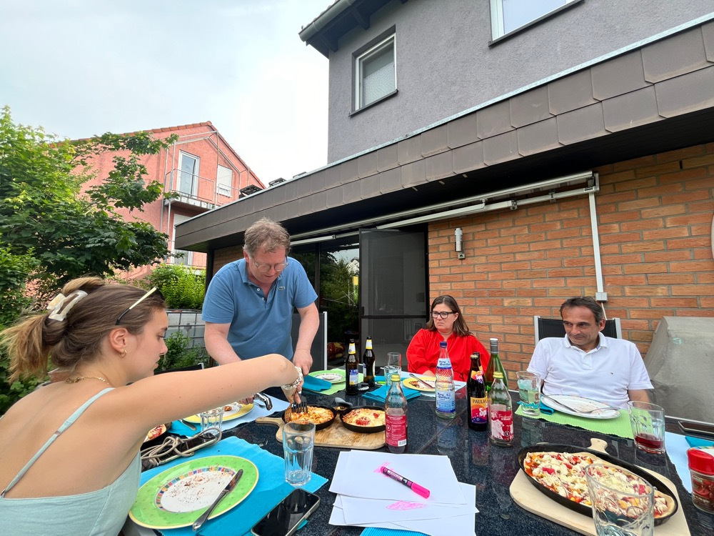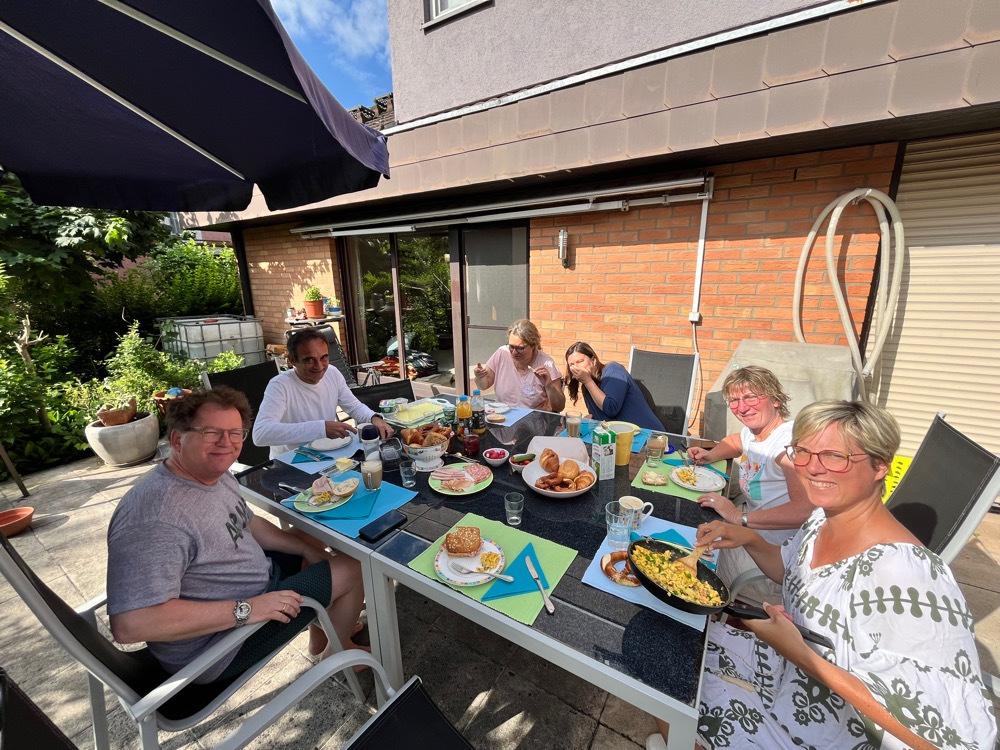 Besonderheiten: Hochwasser im Rhein - Krokodile auf dem Tennisplatz - nur 1 Stunde Verspätung (gilt das überhaupt noch als Verspätung) mit der Bahn aus dem Hohen Norden - ein sonniger Samstag lädt zu sportlichen Höchstleistungen ein (und zu Schorle) - Pizza aus dem Holzofen (viele viele Bleche ...) - Gin-Pröble am Abend hat noch niemandem geschadet - läcker Stullen für die Rückfahrt von der Gastgeberin -