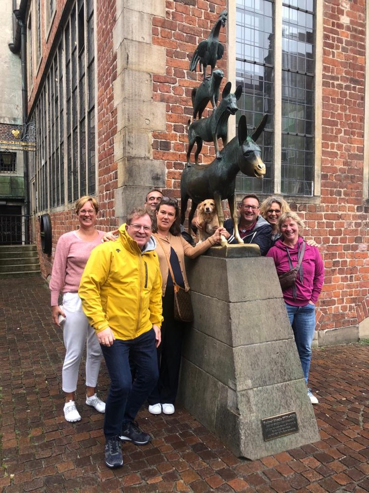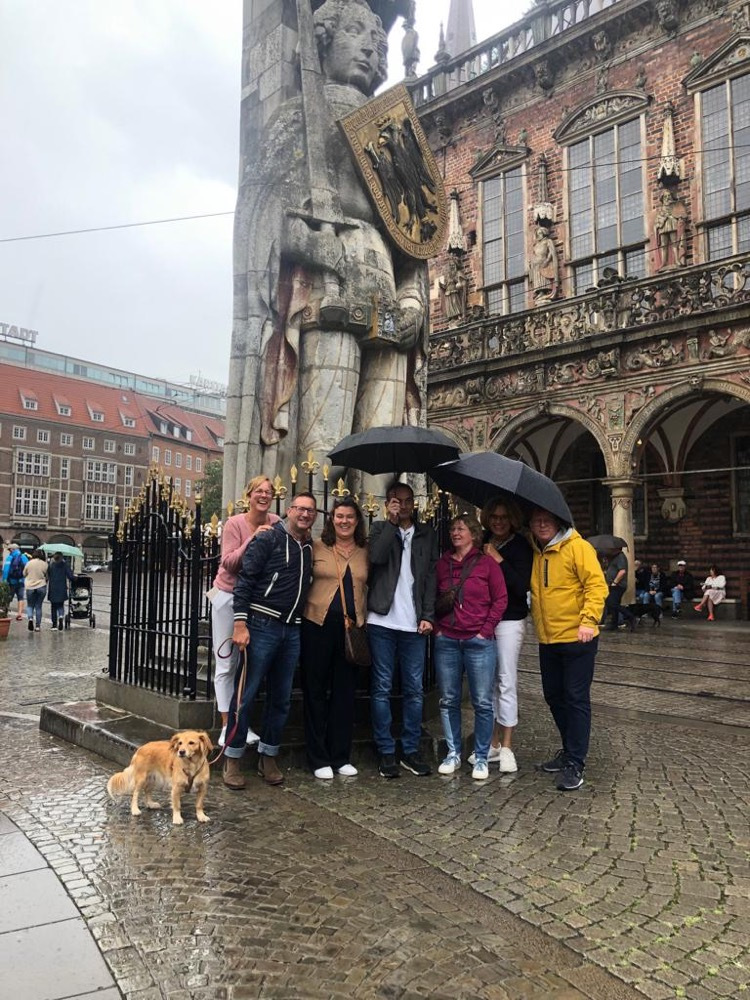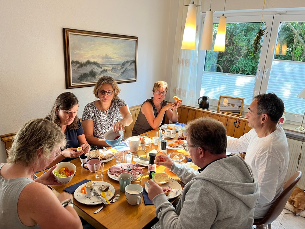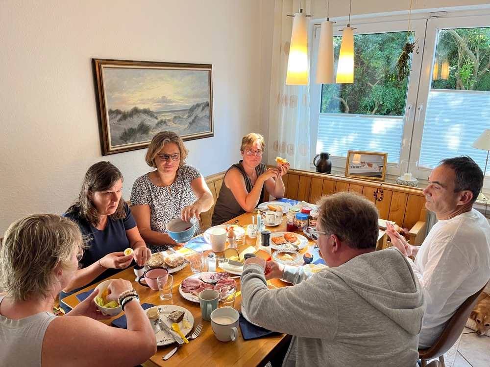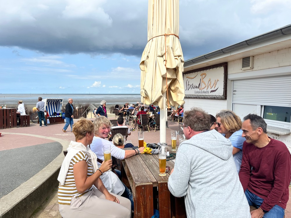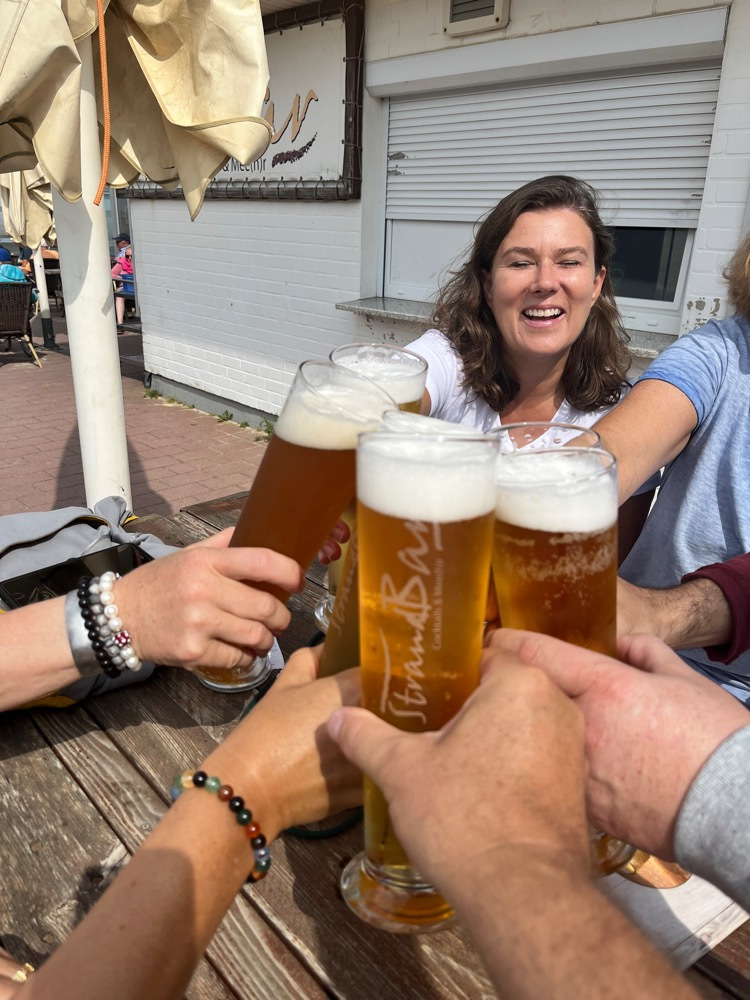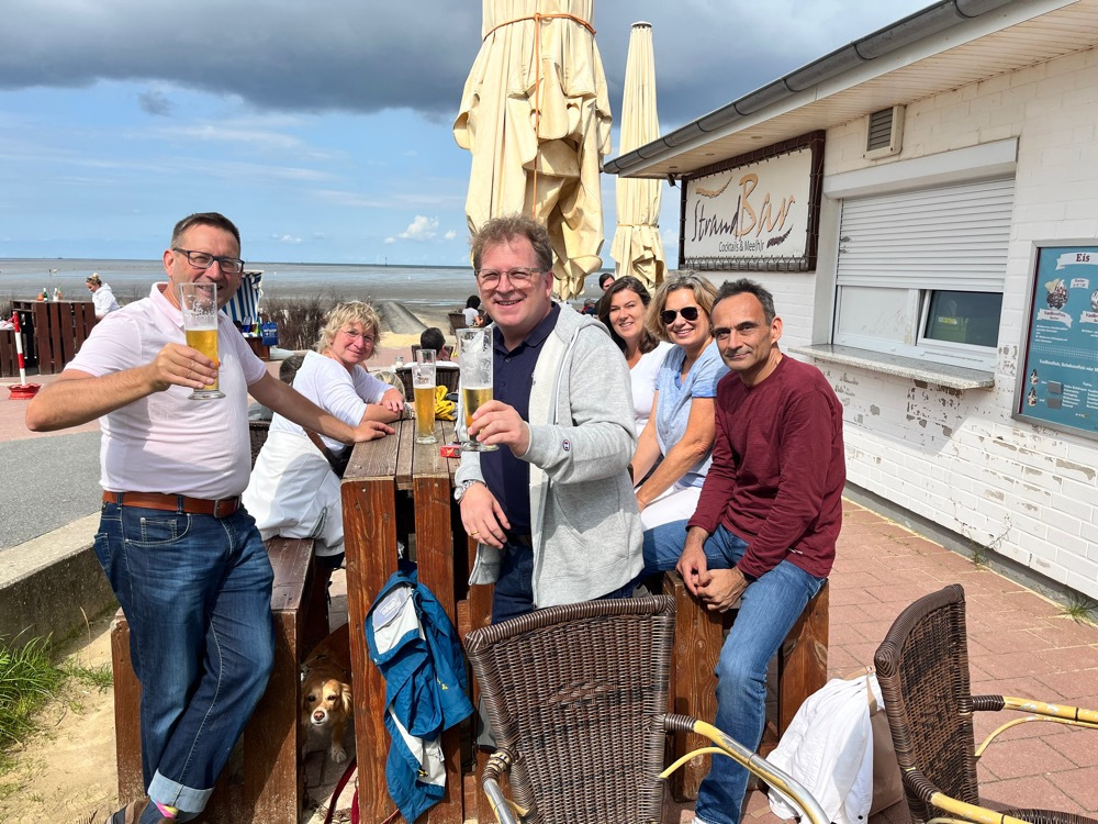 Datum: 25. bis 27. August 2023 Ort: Hagen im Bremischen Bleche: 5 Nachtisch: Eis am Stil - Minimum Besonderheiten: Tina war die Erste! - Uta kommt gerade noch rechtzeitig an, bevor der Flughafen schliesst - "Tina: die Claire macht noch begleitetes Fahren, oder?" - Antwort Uta: "Mit 20?!?!" - Ausflug an den Strand von Cuxhaven, leider war das Wasser weg, dann halt Bier - Wir sitzen im Auto und Petrus öffnet die Schleusen - Fischbrötchen als Appetizer - "Wem gehört das Parkticket auf dem Boden?!?" - Anna darf das erste Mal (!) "Nummer-Girl" sein, Number One! - kein Boxen, dafür Leichtathletik - die deutschen Leichtathleten holen keine einzige Medaille weil sie keine Pizza hatten - die Leichtathletinnen übrigens auch nicht ... - neue Stadtführung: die Sehenswürdigkeiten Bremens in 60 Minuten -