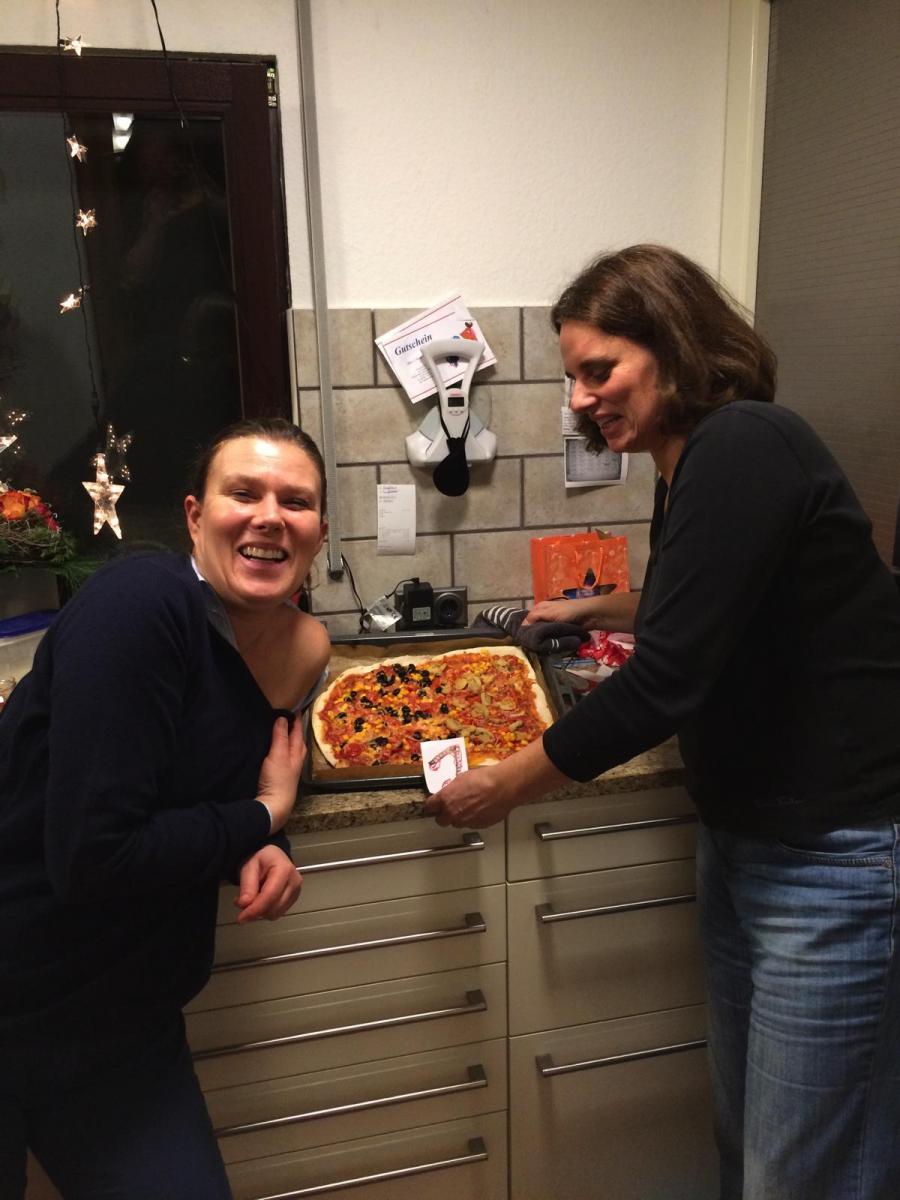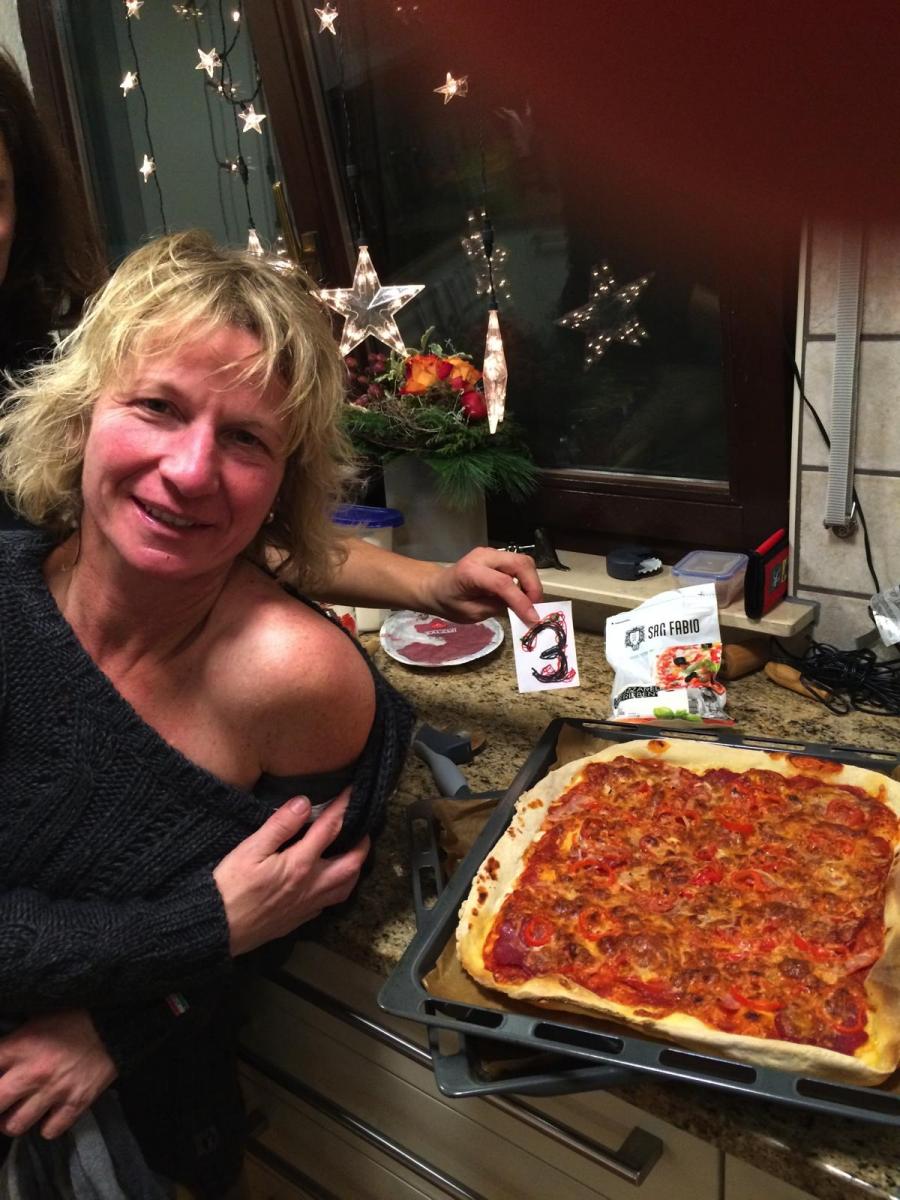 Datum: 12. bis 14. Dezember 2014 Ort: Altrip Bleche: 3 Nachtisch: Naschwerk Besonderheiten: „Kobsiks reisen aus München zeitgleich mit Frank am FR um 19.30 in Altrip an! Ralph schläft NICHT am Tisch oder auf der Couch ein und geht auch NICHT bereits vorzeitig zu Bett. Weihnachtsmarktbesuch und Christmas Shopping bei wundervoller Kulisse in Speyer am SA Nachmittag. Was war wohl in Tinas Wurst und/oder Glühwein? Katharina verweigert die Pizza komplett (Pubertätshormone?), Tina isst tapfer 1 Stück, entsprechend das magere Resultat: 3 Bleche :-( Sehr unterhaltsames Interpretenquiz mit Frank als Quizmaster bis 3.30 - Es gab erstmals beim Pizzaabend mehrere Flaschen Sekt/Prosecco, am Ende sogar Champagner. Kein Bier (!). Am Fr waren Ralph und Frank um 1.30 die letzten Mohikaner
